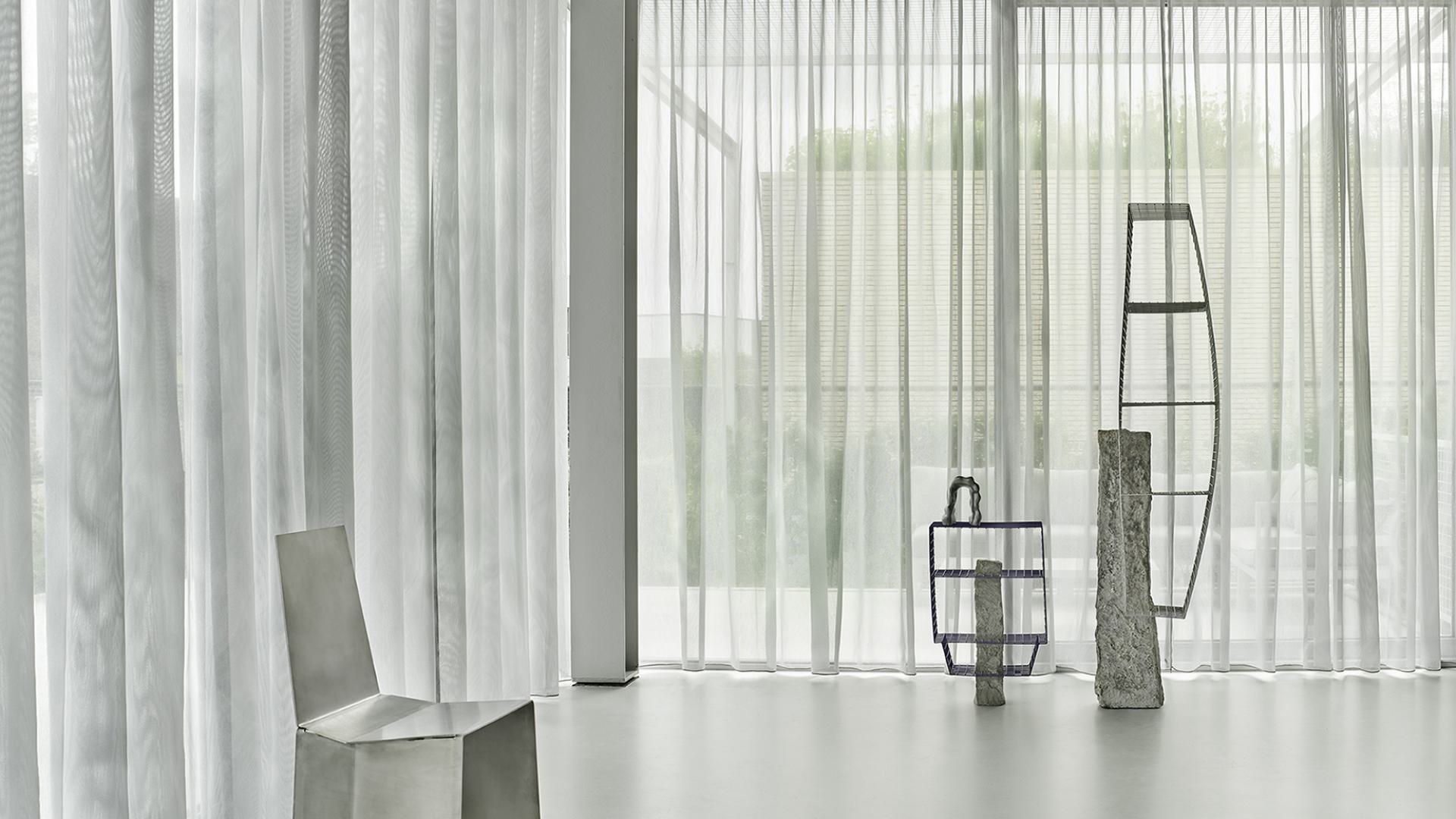 During 'Finished Forms: the residence' we present a selection of our most innovative designs. Think of subtle jacquard KWIK that comes to life as you move past the curtain, or TOPAZ: a digital printed hue on a ultra transparent fabric, or airy leno weave OPUS with slub yarns that combines a natural look with functionality.