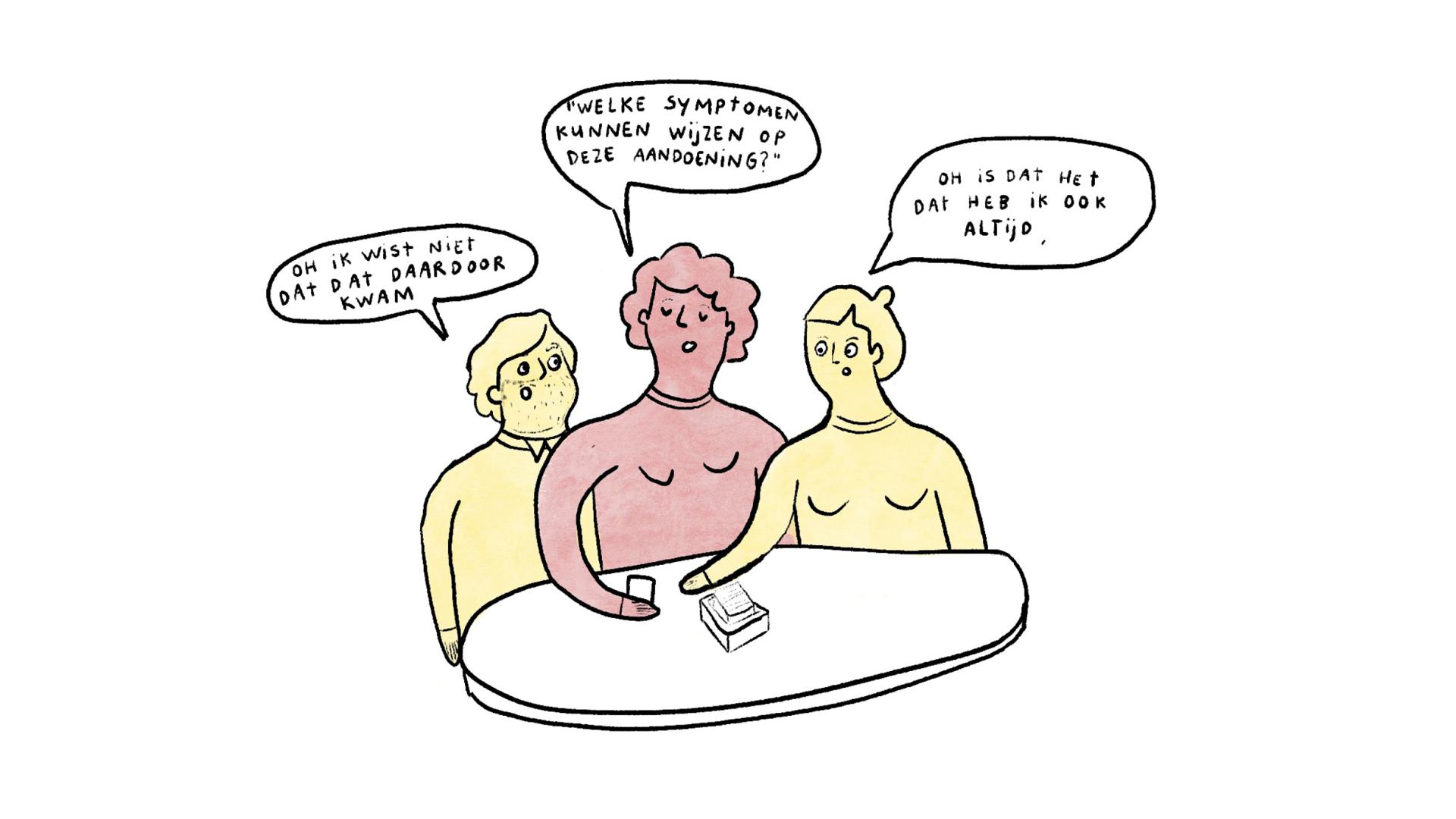 Over the past year, their installation—with illustrations of common conditions and interactive boards full of questions—has traveled to festivals, fairs, and conferences such as Women’s Health Day in Utrecht and Noorderzon in Groningen. The conversations with visitors were disarming, painful, vulnerable, and inspiring. Again and again, it became clear how little people actually know about the womb, even though almost everyone has a story to tell. People were certainly willing to talk when asked, but for most, starting the conversation themselves still felt difficult.
