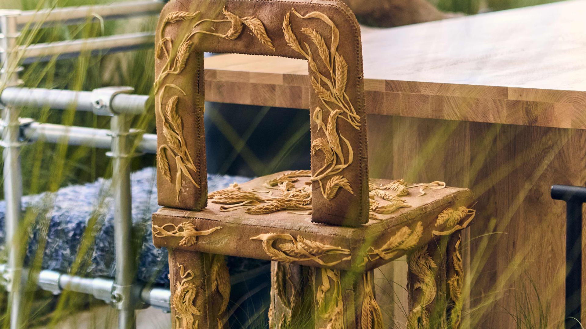The "Croûte que Croûte" collection features classic home furniture pieces entirely made out of bread : A chair (T170), a vase (T65), and a lamp (T65). Inspired by traditional bakery decorative techniques, the objects are made from "pâte morte"; a special type of dough without any leavening agent, used in bakery contests for making sculptural bread creations. This collection re-invents and invites the beautiful craft of bread baking into our homes. Each piece is handcrafted and showcases bread-sculpted details of ears of wheat, ornamenting and growing from the objects themselves in an organic way. A bold and unique signature that binds the collection together. The number coming after the name of each object (T170, T65 ..) refers to the type of flour used in the making process; the higher the number the more the bran present in the wheat, resulting in a darker result. Each piece of the collection is made entirely from our special bread recipe.