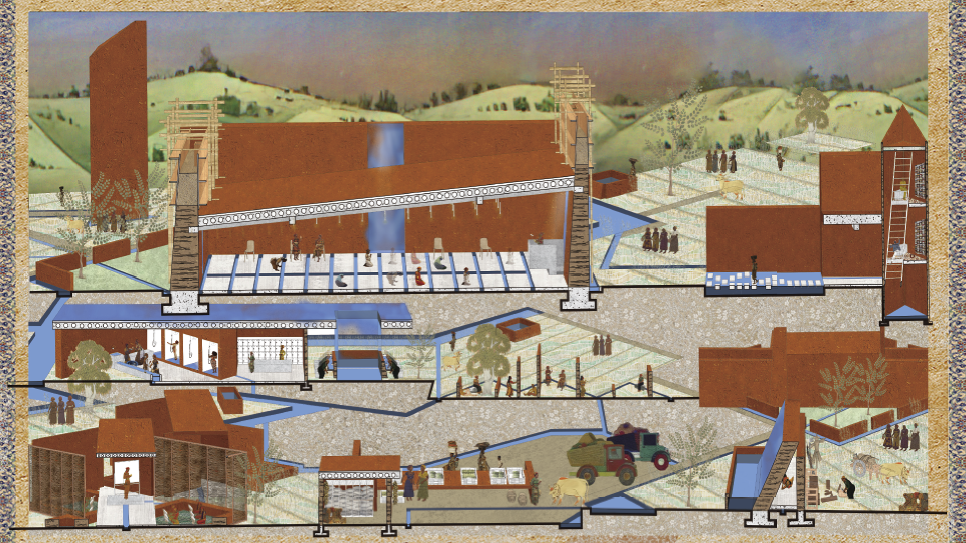 The project challenges the male-dominated hierarchy of traditional mosque typologies by overlaying an orthogonal grid aligned to Mecca upon the marginalized ‘forgotten spaces.’ Positioned next to farmland, the design supports the religious and communal life of female laborers by providing prayer halls, classrooms, and gathering areas. This female-centered spatial network functions as a new type of ‘agora,’ where knowledge-sharing, skills training, and collective empowerment take place. Drawing on the framework of critical regionalism, the design aims to reconfigure gendered spatial dynamics and offer women a tangible platform to renegotiate their socio-religious roles.