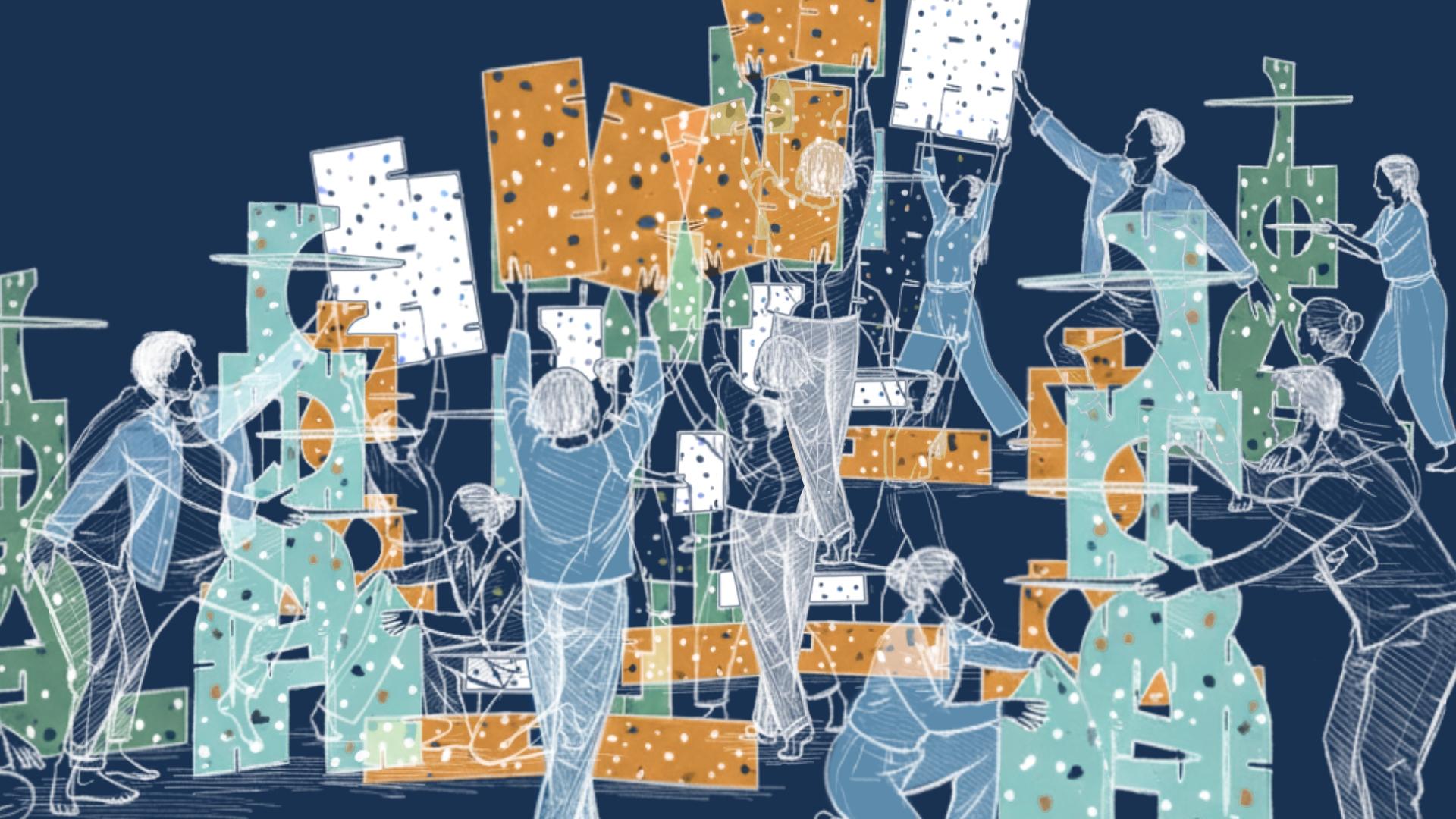 Mat Party is a participatory game of social design that uses movement to explore collective intimacy in public space. It invites participants to take up space together through a shifting choreography of pronouns: me, you, we, they. Participants follow action prompts that engage interlockable mat panels as extensions of their bodies and tools for sculpting the space surrounding them.