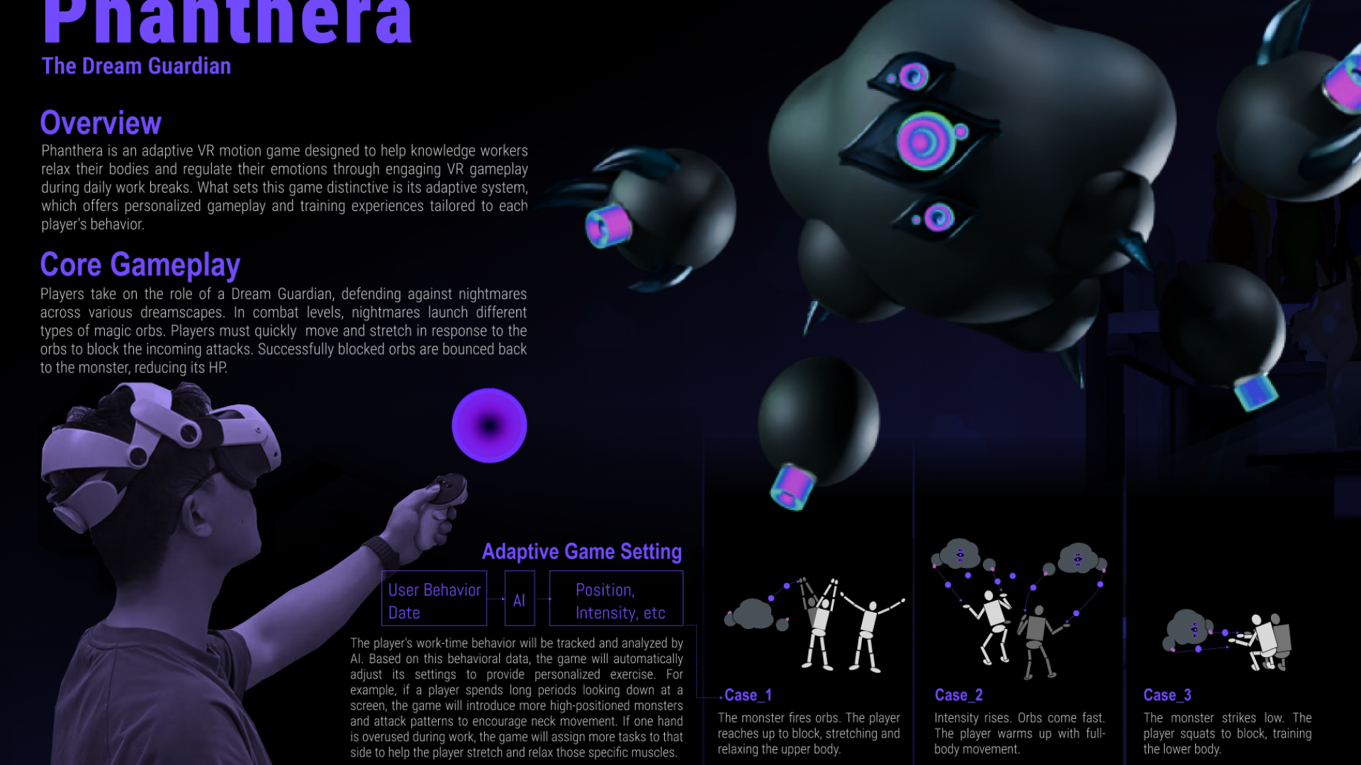 In the game, players take on the role of a “Dream Guardian,” assisting the protagonist in resisting the invasion of nightmares. Confronted with continuous waves of attacks, players must wield various magical tools and defend through quick bodily responses involving movement of the shoulders, neck, and limbs. Each session lasts only 5–10 minutes, allowing players to efficiently complete phases of relaxation and recovery.