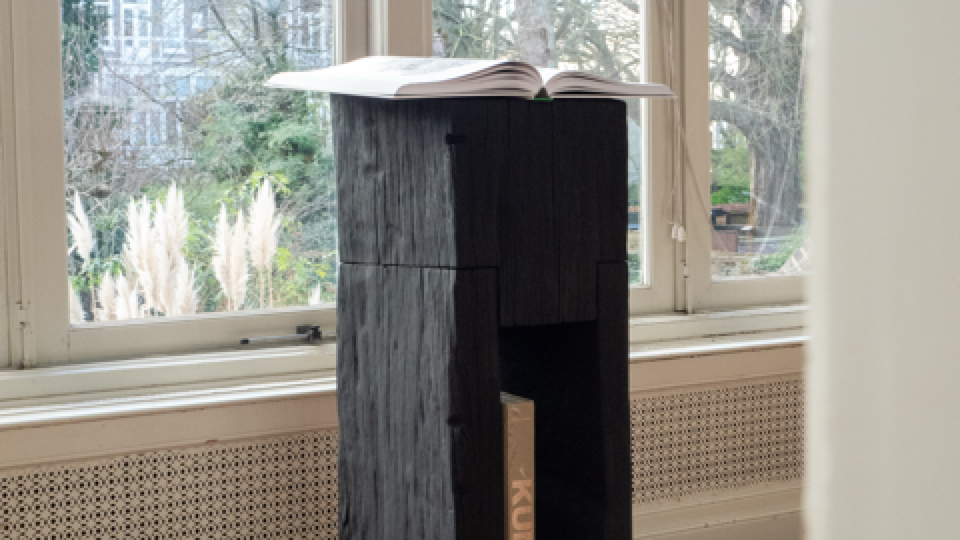 Aesthetically, this collection is characterized by its solid nature. Carved and cut out slabs, mooring poles and railway ties, the large objects aim to reflect the origin of the material. Minimalist finished surfaces are juxtaposed with original qualities: rough live edges, natural oxidation and textures created by years of function in the Rotterdam harbour.