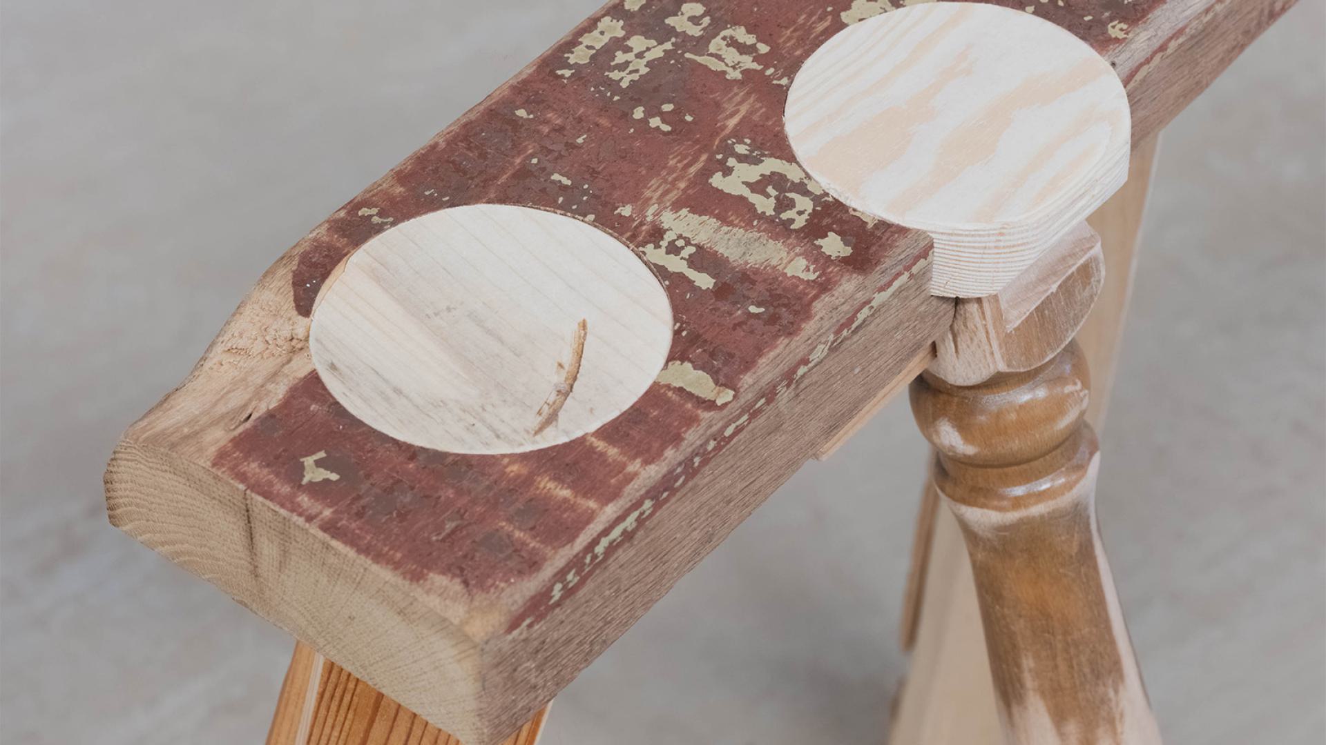 The stools are assembled using wedges made from the same reclaimed wood, which allows the pieces to be disassembled and repaired if needed. A Grasshopper code supports this process by matching the available materials to the appropriate template structure. Through this framework, the project proposes a system of making where reusing materials becomes an active part of the design process. It sits between craft and computational design, combining traditional joinery techniques with digital tools.