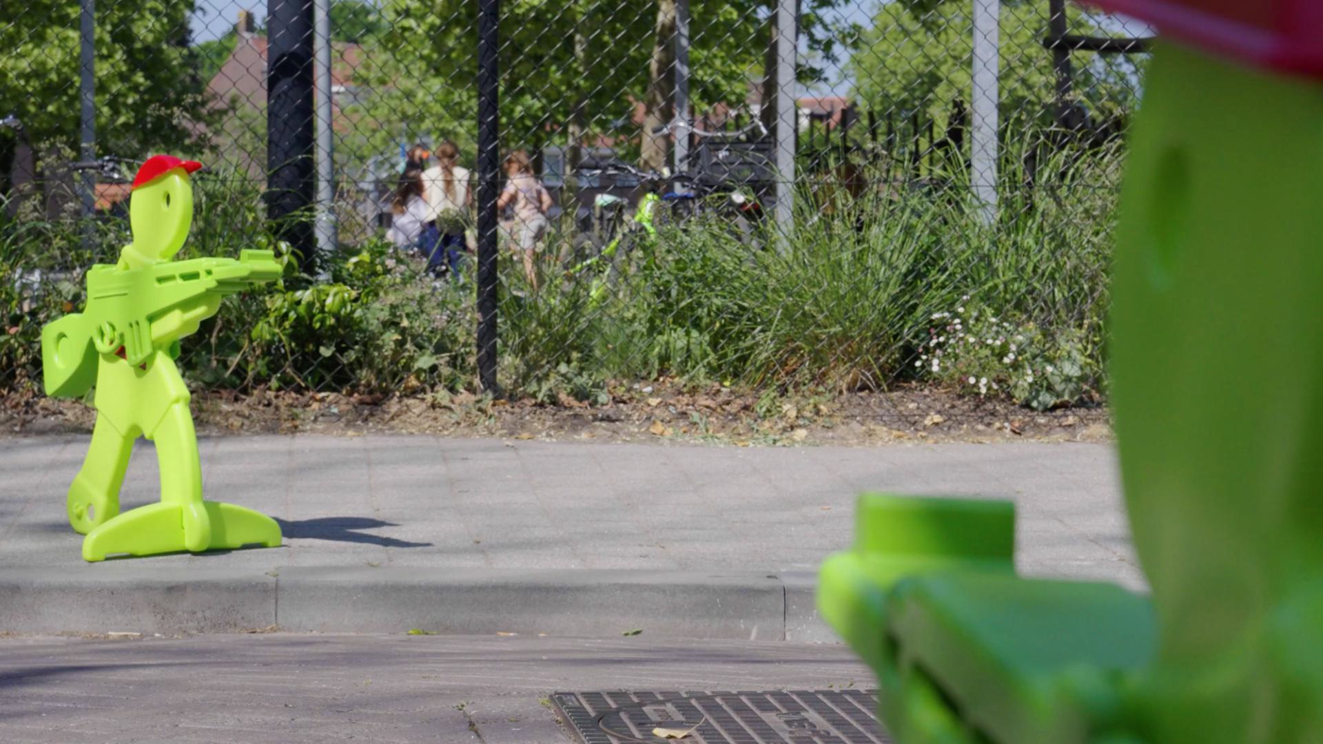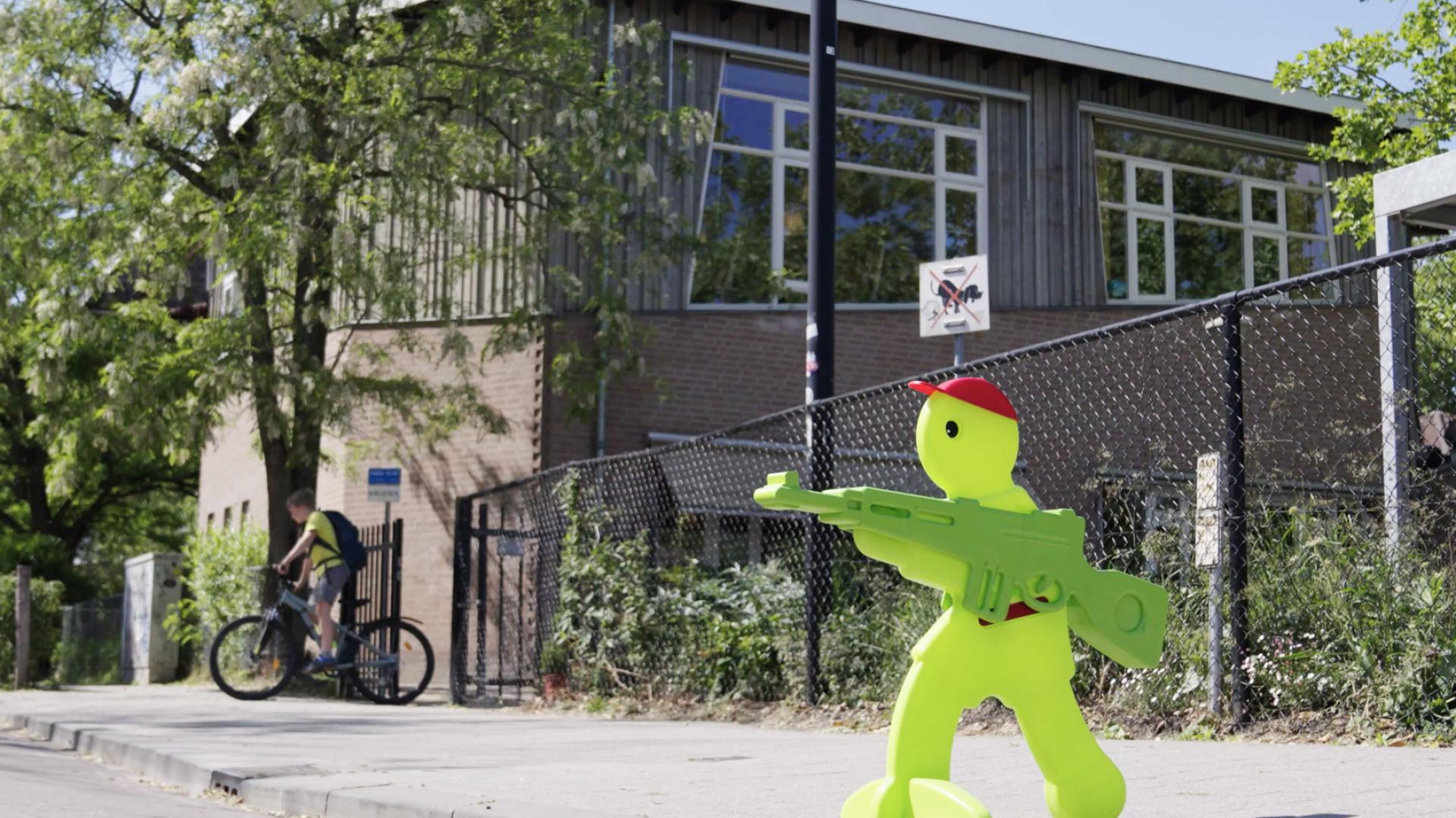 This work presents a distorted version of Victor Veiligheid, the Dutch symbol for child safety. For children in war zones, that safety often does not exist. They lack the freedom to play, to learn, and simply to be children. Start the conversation, because looking away is not an option.