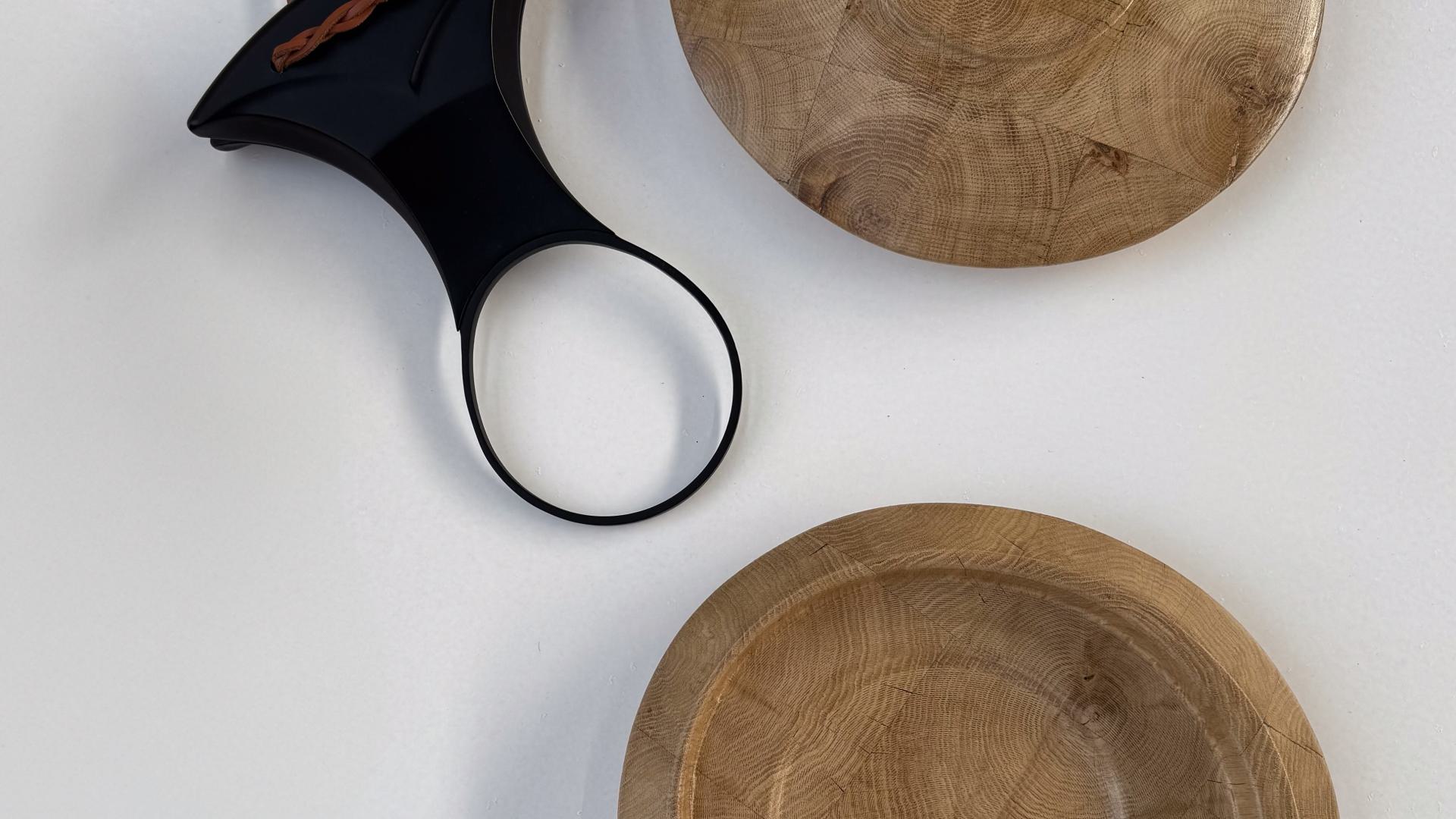 The bowl is crafted from solid oak, symbolizing Belgian craftsmanship and durability, combined with a plastic component referencing playful Spanish objects such as plastic castanets. When touched, a built-in mechanism produces a distinctive clicking sound, reminiscent of castanets, evoking dance, togetherness, and rhythm, conveying the message: “Look, I’m here.”